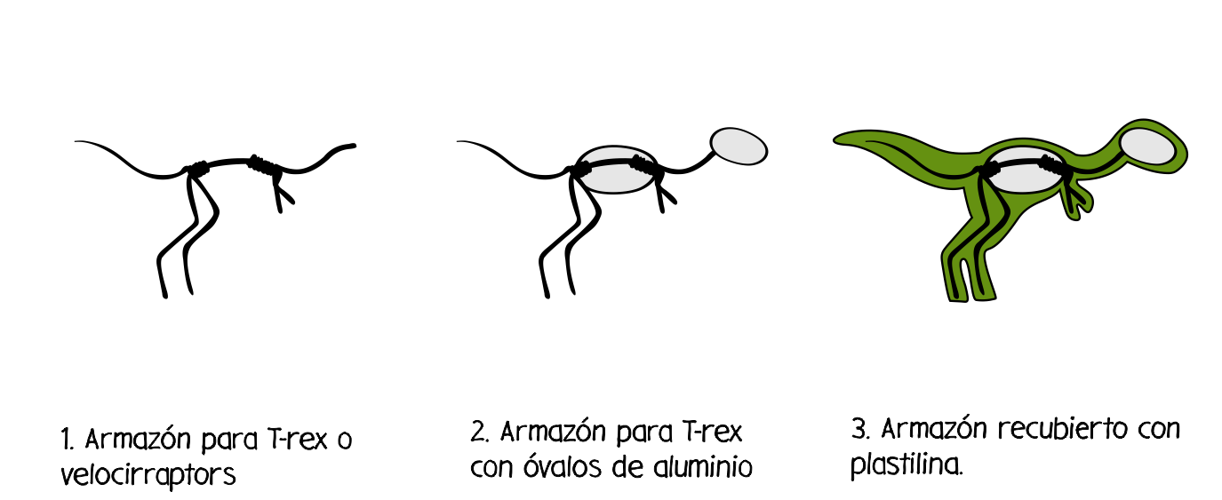 Con plastilina puedes hacer muchas cosas y si, además de plastilina, usas armazones de alambre y papel de alumino esas cosas pueden ser asombrosas, dinosauriosamente asombrasas. Toma tu plastilina, alambre, papel de aluminio, algún palillo y comienza a lanzar rugidos de creación.